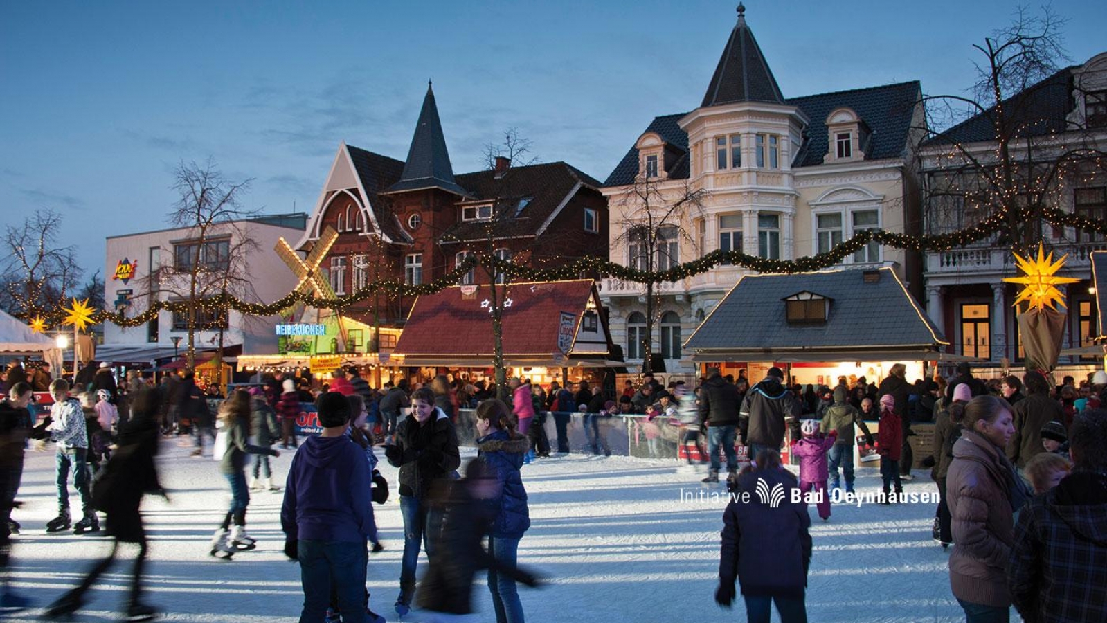 Wenn es draußen kalt wird, die Abende lang sind – dann ist genau die richtige Zeit gekommen, um einen Glühwein oder ein anderes Heißgetränk auf dem Weihnachtsmarkt in der Innenstadt von Bad Oeynhausen zu genießen, um sich die Finger an dem heißen Getränk zu wärmen, den Duft der gebrannten Mandeln einzusaugen und das bunte Treiben vor den Hütten oder auf der beliebten Eislaufbahn zu beobachten. Hier laden 375 qm Eisfläche zu einem unvergesslichen Schlittschuhvergnügen ein.